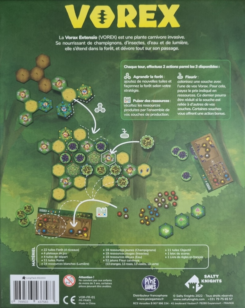 A "Vorax extensio" (VOREX) é uma planta carnívora invasora. Alimentando-se de cogumelos, insetos, água e luz, ela se espalha pela floresta e devora tudo em seu caminho. Seja voraz, espalhe-se.... Assuma o controle dos recursos da floresta!