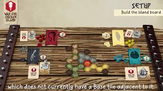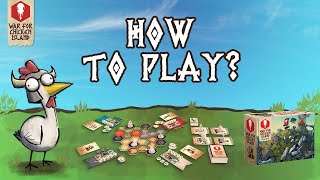"War For Chicken Island" é um jogo de estratégia onde cada jogador deve lutar pelo pequeno espaço na ilha e administrar os limitados recursos para derrotar os oponentes e se provar o Campeão da ilha. Cada Jogador deve comandar um pequeno exército de galinhas e um líder com atributos especiais. Além disso, cada jogador tem cinco dados que conferem ações extras e nove recursos que irão permitir construir máquinas para a batalha.