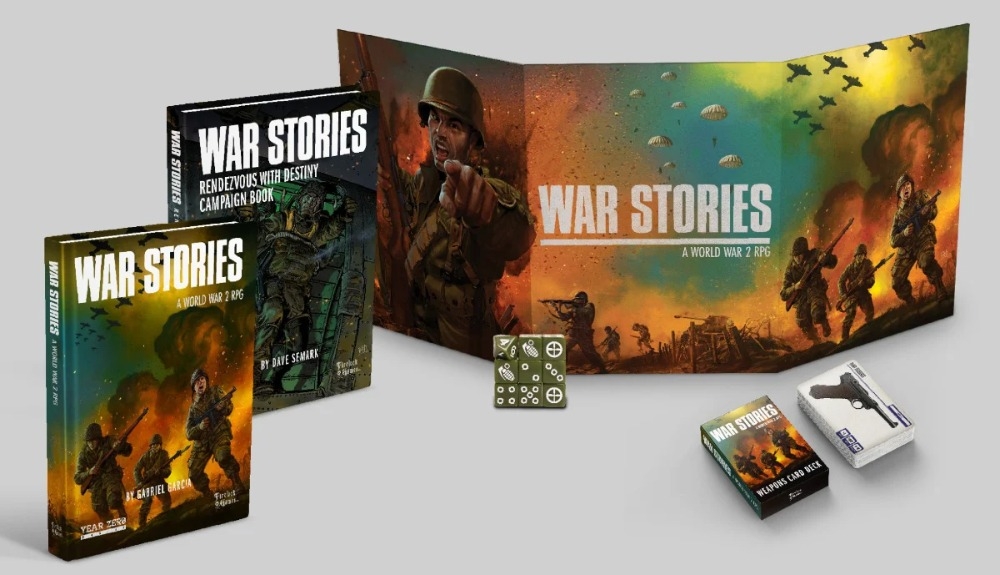 War Stories é um jogo RPG ambientado na Segunda Guerra Mundial. Com ele, você e seus amigos poderão assumir o papel de um esquadrão heroico de paraquedistas destacados para a Normandia durante a operação Overlord em Junho de 1944 ou como tripulantes de um tanque no avanço subsequente aos desembarques do dia D. Vocês também podem assumir o papel de correspondentes de guerra ou mesmo como guerrilheiros da resistência francesa. Durante a campanha, os jogadores poderão construir sua própria história de como liberaram a França da ocupação alemã e se dirigiram à vitória! Mas acima de tudo, os jogadores irão criar momentos de coragem e valor, incluindo suas histórias pessoais no desenrolar da história do conflito do dia D até 1945.