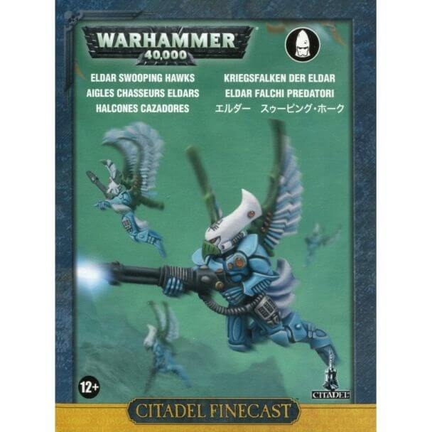 Os Swooping Hawks são o rápido suporte aéreo do exército Aeldari. Eles usam asas feitas de placas de penas vibrantes que incorporam pequenos elevadores gravitacionais, permitindo que eles voem alto acima do campo de batalha antes de descer sobre as unidades inimigas, atirando nelas com laserblasters e pacotes de granadas, antes de se desvencilhar e saltar de volta para o céu. Embora possam estar levemente armados e blindados, eles são a unidade perfeita para eliminar a artilharia inimiga, caçar veículos em movimento rápido e imobilizar unidades de flanco.