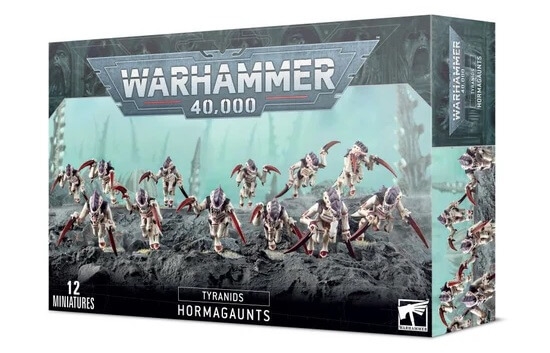 O Hormagaunt é uma bioforma Tyranid altamente especializada. Cada Hormagaunt tem quatro garras afiadas especialmente desenvolvidas para rasgar e perfurar carne e armadura, e poderosas patas traseiras que permitem que a criatura avance para o combate a uma velocidade espantosa. Este conjunto de caixa contém 12 Hormagaunts de plástico com várias partes.