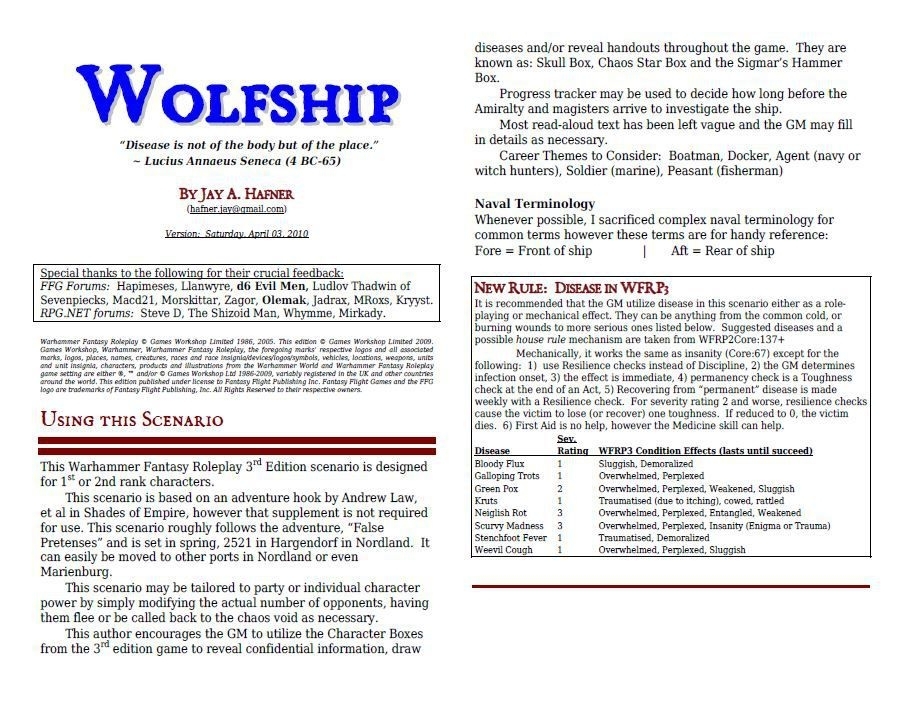 2. Warhammer Fantasy Roleplay (3rd Edition) - Wolfship