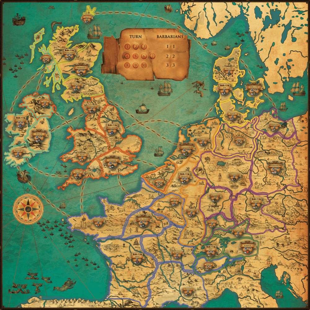 Cada jogador começa como o governante de um país pequeno que tentará transformar em um império.