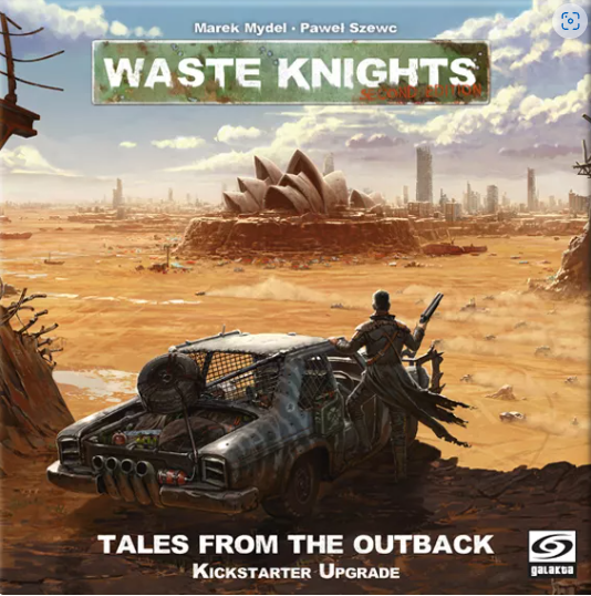 Tales from the Outback é uma expansão do jogo pós-apocaliptico Waste Knights, contendo alguns extras da versão do Kickstarter, incluindo 4 novas aventuras, 4 novos personagens e 4 novos veículos. Além disso novos eventos, equipamentos e inimigos. Uma nova mecânica permite a evolução dos veículos.