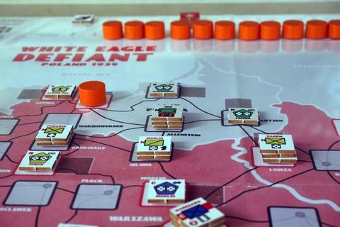 O White Eagle Defiant, o jogo de acompanhamento do best-seller Brave Little Belgium, recria a invasão alemã, eslovaca e soviética da Polônia em setembro e outubro de 1939 que marcou o início da Segunda Guerra Mundial. A Alemanha e seu aliado eslovaco começaram a invasão em 1º de setembro de 1939; a União Soviética seguiu o exemplo no dia 17. Conhecida na Polônia como Campanha de Setembro e na Alemanha pelo codinome Fall Weiss (Case White), a campanha terminou em 6 de outubro de 1939, com a Alemanha e a União Soviética dividindo o país em dois.