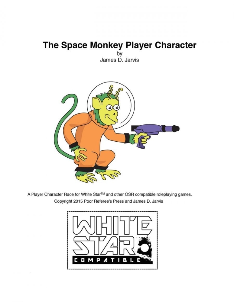 O Personagem Jogador Space Monkey é uma opção desafiadora de role-playing para jogadores que procuram algo um pouco diferente para jogar. Escrito para ser compatível com White Star, mas deve ser uma classe divertida em outros jogos compatíveis com OSR.