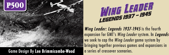 Wing Leader: Legends 1937-1945 é a quarta expansão do sistema Wing Leader da GMT. No Legends, buscamos limitar o sistema de jogo Wing Leader, reunindo jogos e expansões anteriores em uma série de cenários cruzados.
