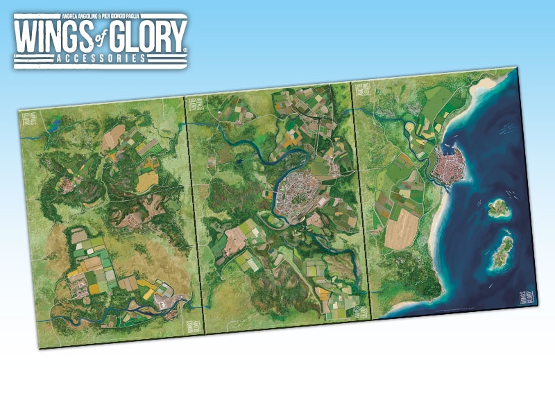 Os playmats do jogo Wings of Glory são um sistema modular, projetados para fornecer uma superfície definitiva de jogo para suas batalhas aéreas e apropriadas para jogos ambientados tanto em WW1 e na WW2.