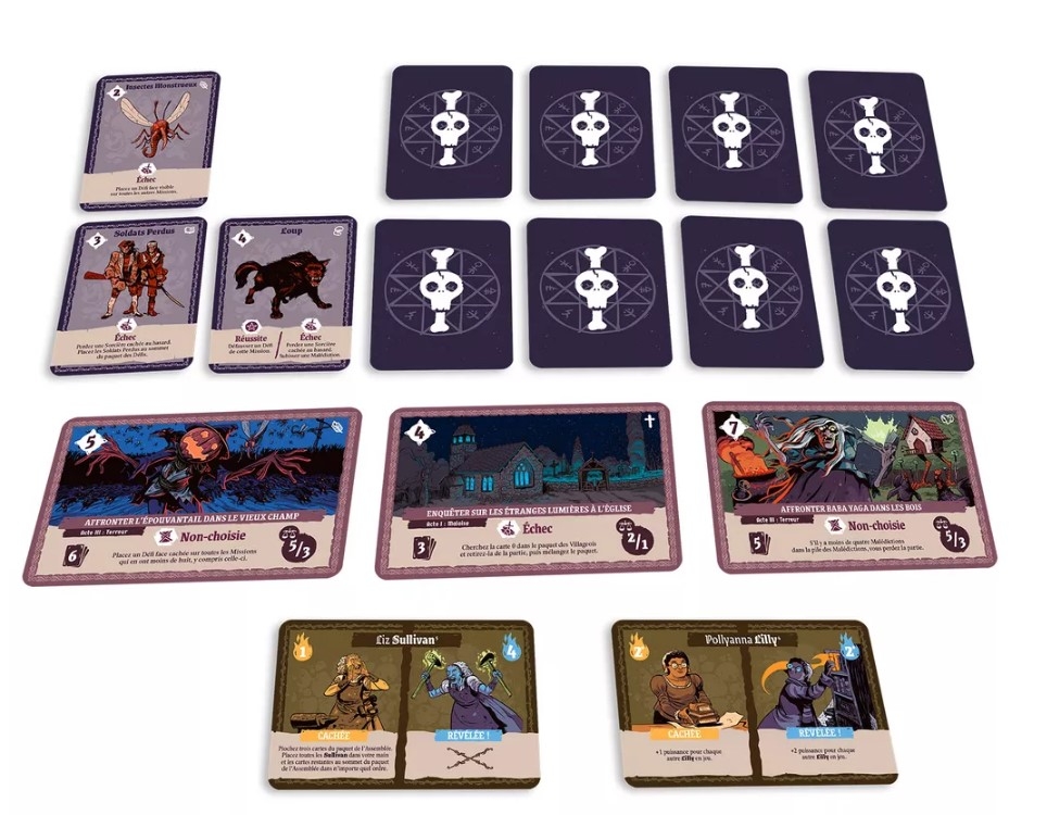 No início do jogo você monta um coven de bruxas de famílias de mulheres representadas por um baralho de cartas. Selecionar várias bruxas de uma família torna essa família mais poderosa. Cada família está focada em diferentes tarefas no jogo - revelando desafios, aumentando o poder de ataque, revelando a convicção dos jurados ou capturando familiares para ajudá-lo em sua luta. A luta é real e cada um dos oito jurados enfrenta um vilão diferente. É o Cavaleiro Sem Cabeça, Baba Yaga, o Espantalho ou algum outro demônio? Na configuração, você escolhe três jurados, suas missões e seus desafios únicos – fornecendo 56 combinações possíveis com grande variedade nos tipos de desafios e monstros que você enfrentará. Se você falhar em duas missões ou perder cinco aldeões, você perde o jogo. Mesmo que você derrote as missões, ainda enfrentará o julgamento e só terá certeza de seu destino quando revelar a convicção dos jurados e ver se fez o suficiente para persuadi-los.
