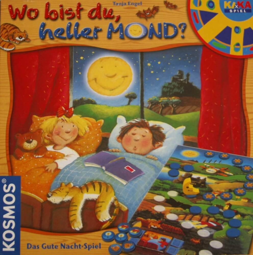 Um jogo de memória para crianças a partir de 4 anos . Os jogadores viram peças de madeira com imagens ou estrelas douradas. Ao coletar pares, vire as estrelas para que a lua suba mais alto no tabuleiro. O jogador que tiver mais pares quando a lua atingir o topo do céu vence o jogo.