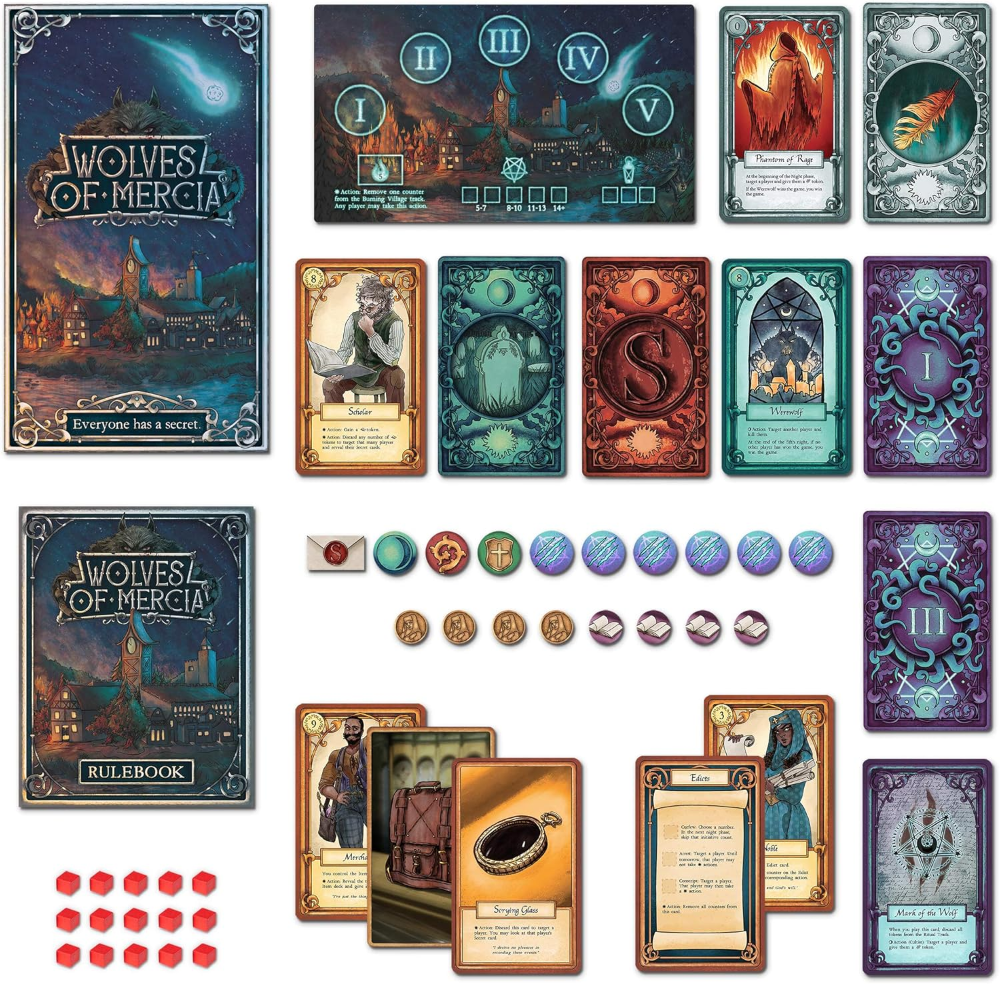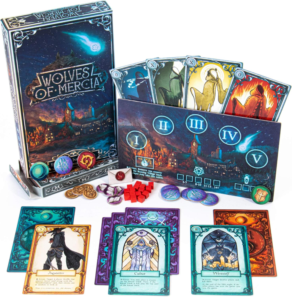 Wolves of Mercia é um jogo de engano e estratégia, ambientado na sombria vila de fantasia de Mercia. Mas nesta cidade, os aldeões não esperam impotentes para serem massacrados pelo lobisomem. Cada um deve usar suas habilidades únicas para cumprir sua própria agenda oculta! Seja incendiando a vila, rastreando o lobisomem à noite ou completando um terrível ritual sobrenatural, 5 a 16 jogadores mentirão, blefarão e matarão para aproveitar a noite.