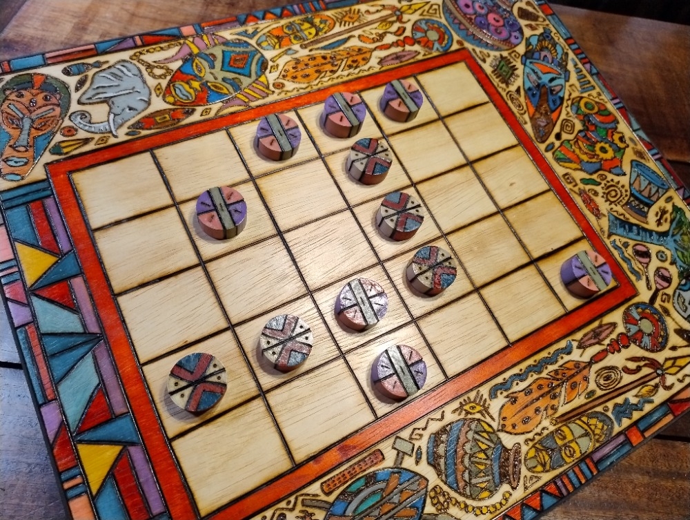 Yoté é um jogo de estratégia dos povos africanos. Ele pode ser praticado por dois ou mais jogadores(as) e é encontrado em vários países da África Ocidental, tais como Senegal, Guiné e Gâmbia. Utilizando do mecanismo de mancala, o tabuleiro de "Yoté" tem 30 buracos, divididos em 5 filas de 6 buracos cada. Cada jogador deve ter 12 peças de cores ou formatos diferentes, de modo a serem facilmente diferenciadas.