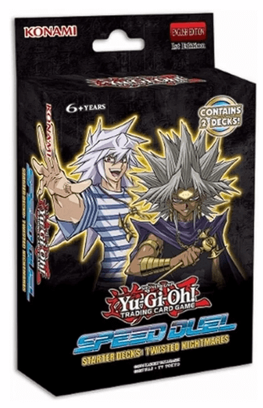 Cada Decks Iniciais de Speed Duel: Partida do Milênio & Pesadelos Perturbadores contém 2 Decks completamente customizáveis, 4 novos Cards de Habilidade e 2 estampas Ultra Raras variantes. Escolha o seu lado e reviva dois dos Duelos mais sombrios da série original!
