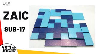 Zaic é um jogo de 15 minutos para 2 jogadores que pode ser jogado em qualquer superfície plana sem tabuleiro. Inspirado nos zigurates da Mesopotâmia e nos ladrilhos do piso do banheiro do designer, cada jogador disputa a maior área de seus ladrilhos conectando os seus próprios e cobrindo os do oponente.