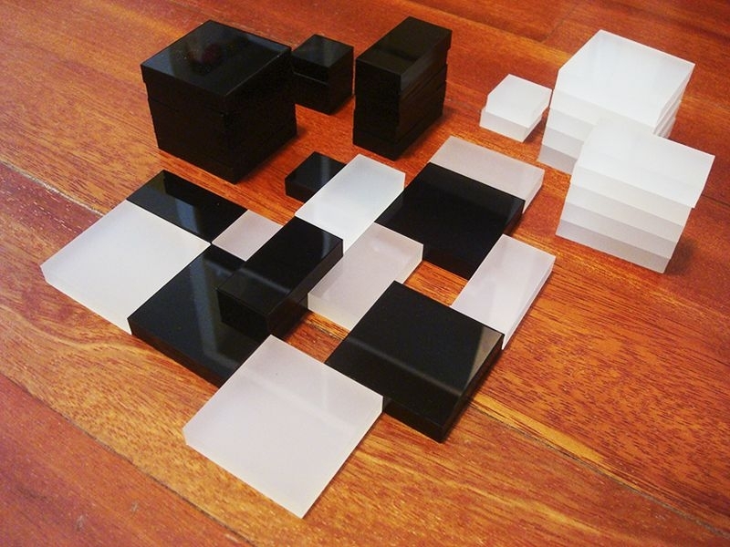 Cada jogador recebe 19 peças em três tamanhos. Conforme o jogo avança, fica mais difícil jogar as peças maiores. No entanto, o jogo termina quando um jogador não consegue fazer um movimento, então forçar um final rápido por não ter mais peças jogáveis pode ser uma vantagem.