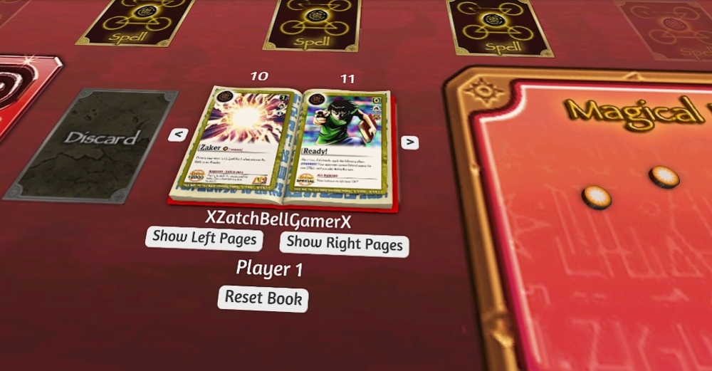 O livro de feitiços é um dispositivo onde os jogadores constroem seus decks no pequeno livro e depois viram as páginas para lançar feitiços, fazer ataques e conjurar Mamodos contra seus inimigos.