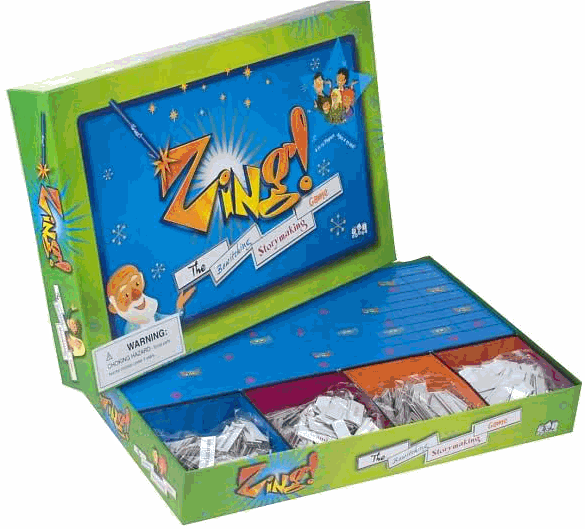 Zing! dá-lhe um delicioso conjunto de palavras (com três níveis de dificuldade). Com essas e algumas suas próprias, você desenvolve uma frase. Você vai marcar pontos por cada palavra Zing! que você usar. Os jogadores se revezam adicionando a sua sentença até que você tenha uma história!