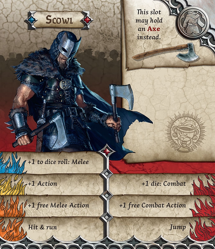 Scowl é um sobrevivente promocional disponível para aqueles que participaram da campanha do Zombicide Black Plague no Kickstarter que inclui uma miniatura e um cartão de identificação.