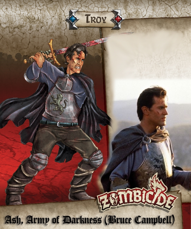 Troy é um sobrevivente promocional disponível para aqueles que participaram da campanha do Zombicide Black Plague no Kickstarter que inclui uma miniatura e um cartão de identificação.