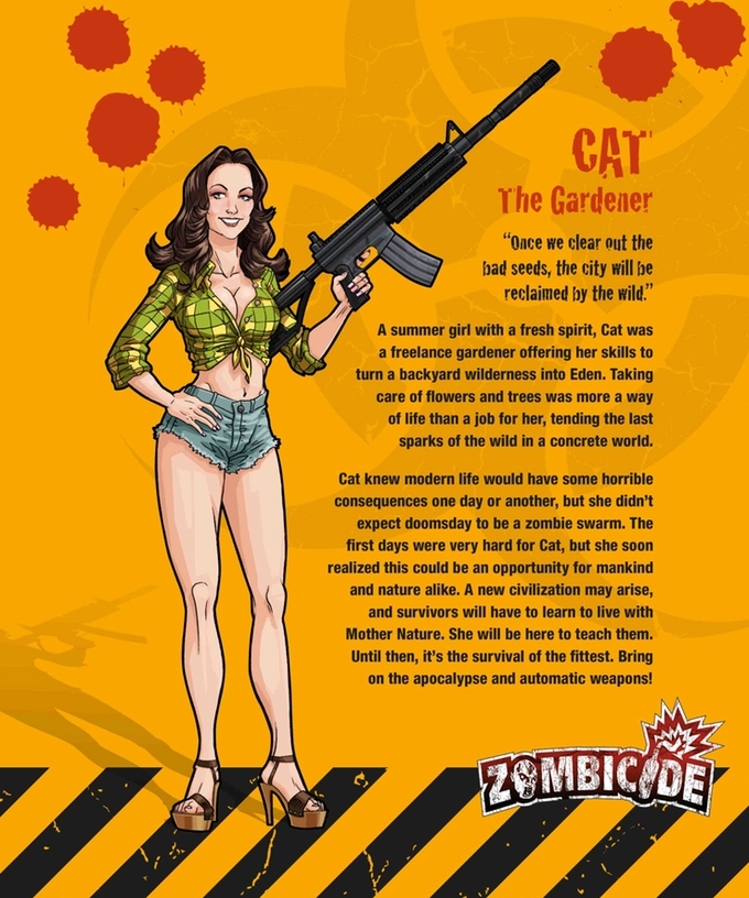 Uma garota de verão de espírito livre, Cat era uma jardineira freelance oferecendo suas habilidades para transformar quintais selvagens num Eden. Cuidar de flores e árvores era mais um estilo de vida do que um trabalho para ela, guardando as últimas fagulhas de natureza em um mundo de concreto. Cat sabia que a vida moderna teria consequências terríveis qualquer dia desses, mas ela não esperava que o dia do juízo final seria uma invasão zumbi. Os primeiros dias foram muito difíceis para Cat, mas ela logo percebeu que isso podia ser uma oportunidade tanto para a humanidade quanto para a natureza. Uma nova civilização pode surgir, e os sobreviventes terão que aprender a viver com a Mãe Natureza. Ela estará aqui para ensiná-los. Até lá, é a sobrevivência dos mais fortes. Que venha o apocalipse e armas automáticas!