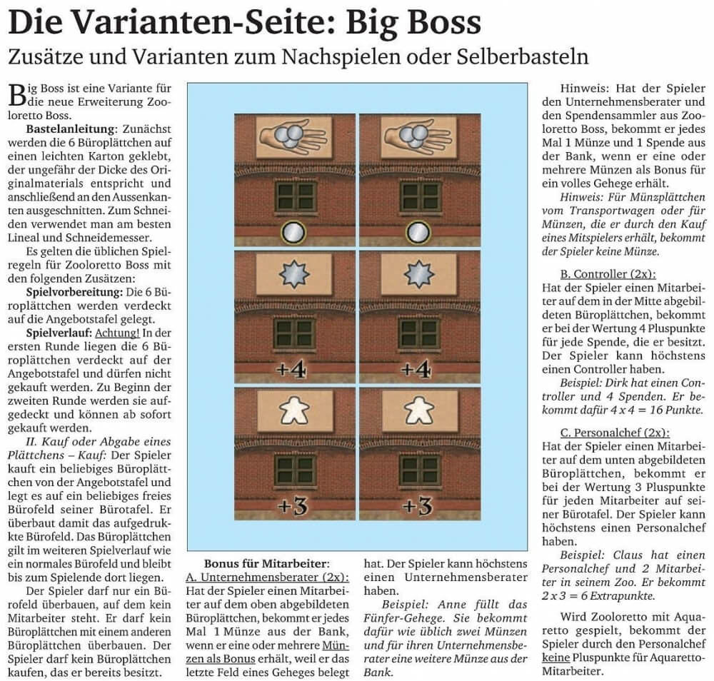 Big Boss é uma mini-expansão para Zooloretto Boss. Ele permite que os jogadores comprem escritórios diferentes, construam sobre os escritórios normais, dando ao jogador novas opções.