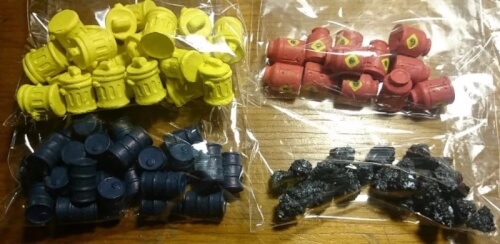 24 marcadores azul petróleo = Barril de óleo;
