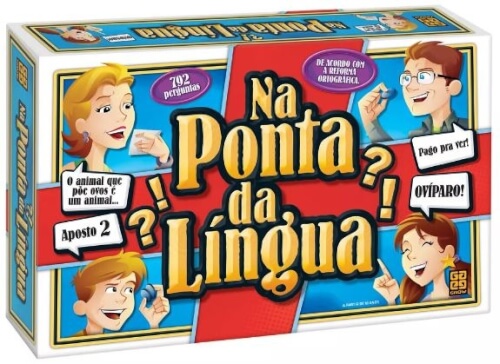 A criançada vai se divertir nessa brincadeira super divertida! Na ponta da Língua é um jogo com mais de 750 perguntas sobre gramática, verbos e ortografia. Tudo isso para a criançada aprender brincando! As crianças podem se reunir e apostar nas respostas que acham corretas, e quem acertar ganha a ficha de quem erra. Para vencer, é preciso estar com tudo na ponta da língua.
