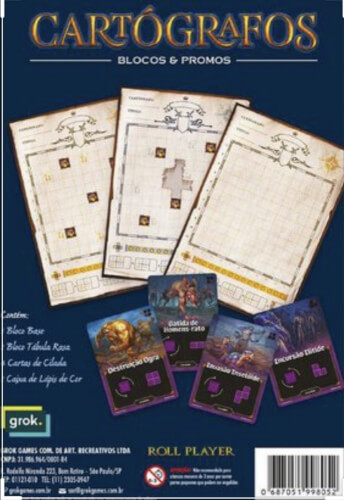 Este conjunto promocional do jogo Cartógrafos inclui novas cartas de Cilada, um bloco extra de folhas de mapa, um bloco de folhas de mapa da variante “Tabula Rasa“ e uma caixa de lápis de cor colorido.