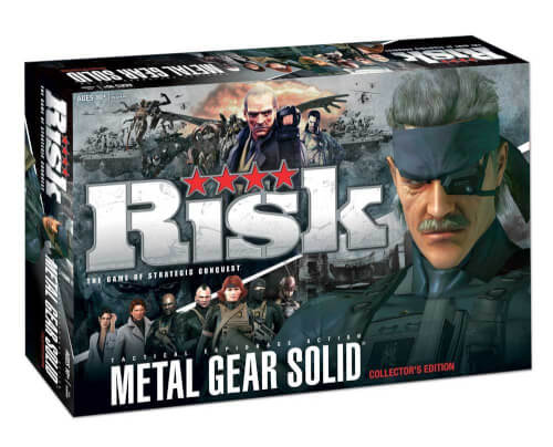 RISK: Metal Gear Solid adiciona algumas reviravoltas para o clássico jogo de Risk com um tema baseado na série do jogo de vídeo game Metal Gear Solid.