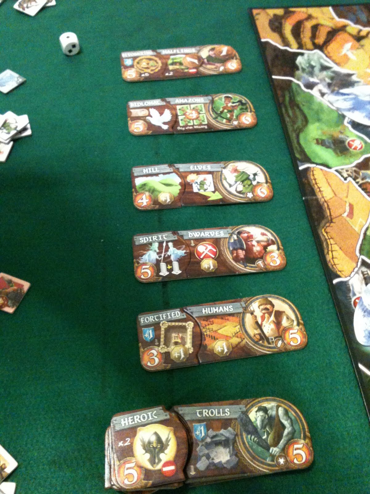 Mais uma vez, optei em fazer 2 declínios de raça, como no outro jogo. Acho que isso faz diferença nas vitórias. O Small World não permite apego com as raças. É necessário mudá-las sempre. Joguei com os Magos, Halflings e por último os Elfos. Joguei com os Elfos somente a última rodada, mas ajudou a ganhar os 2 pontos de diferença da vitória.