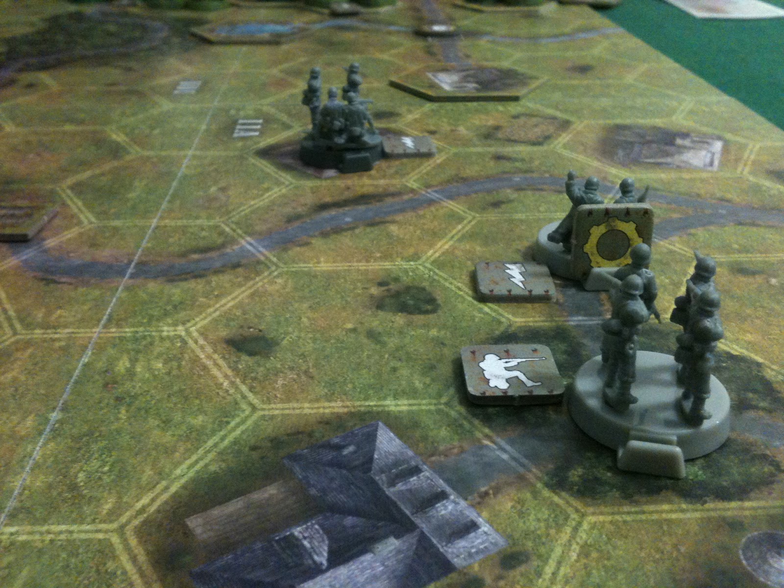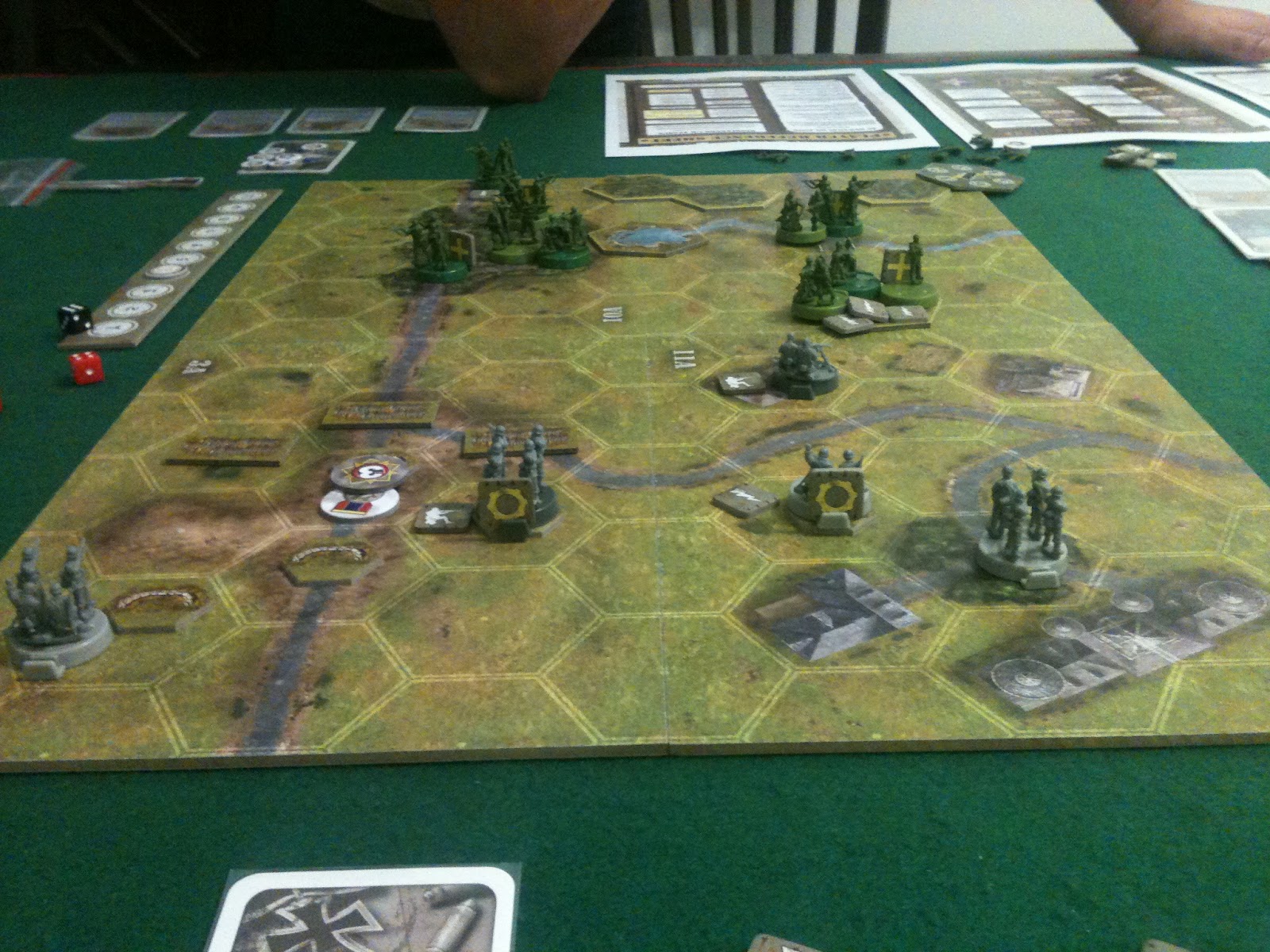 Quanto ao fato de "ser bom" em mais que 2 jogadores, eu sinceramente não vi problema algum até hoje. Não há dificuldade alguma, o TIDE OF IRON é um wargame que dá aos jogadores muita liberdade (aliás é uma as coisas que mais gosto nele) porque não é amarrado à cartas de ordem, cada jogador pode tomar suas próprias decisões sem precisar perguntar nada a seu companheiro. No entanto é preciso atentar que os RECURSOS obtidos no jogo (para acionar Cartas de Estratégia ou tomar a Iniciativa do combate) pertencem ao mesmo lado e portanto não dá para sair querendo vencer a guerra sozinho.