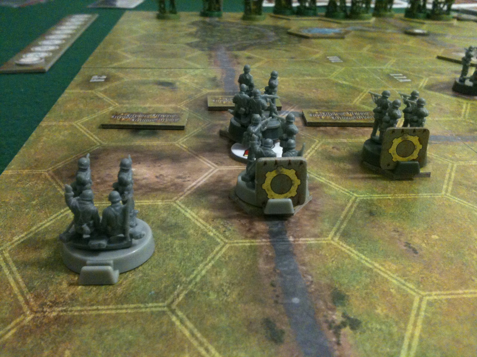Quanto ao fato de "ser bom" em mais que 2 jogadores, eu sinceramente não vi problema algum até hoje. Não há dificuldade alguma, o TIDE OF IRON é um wargame que dá aos jogadores muita liberdade (aliás é uma as coisas que mais gosto nele) porque não é amarrado à cartas de ordem, cada jogador pode tomar suas próprias decisões sem precisar perguntar nada a seu companheiro. No entanto é preciso atentar que os RECURSOS obtidos no jogo (para acionar Cartas de Estratégia ou tomar a Iniciativa do combate) pertencem ao mesmo lado e portanto não dá para sair querendo vencer a guerra sozinho.