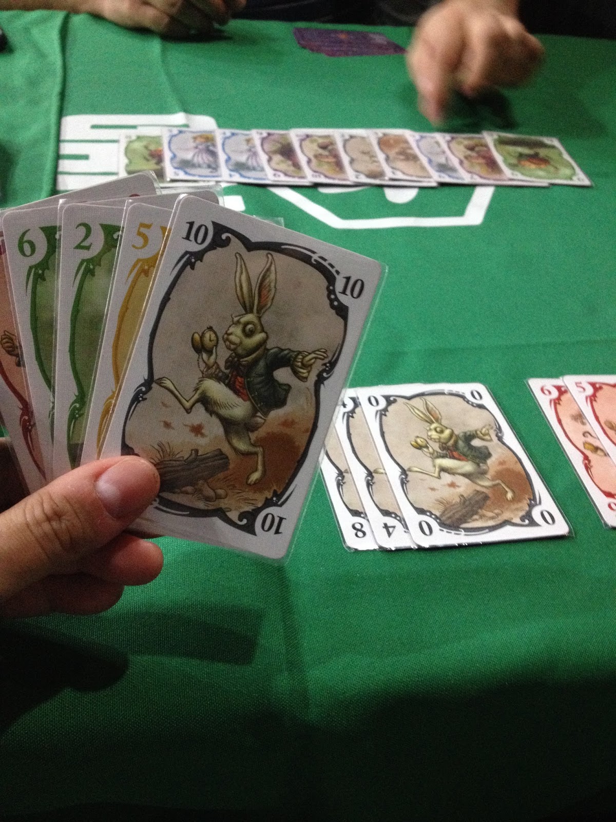 O jogo se desenvolve dessa forma até que um jogador tenha pelo menos uma carta de todas as seis cores, ou o monte de compra tenha acabado.