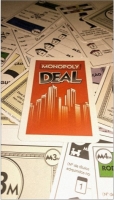 Bom, Monopoly Deal revelou-se uma grata surpresa! É um jogo onde quem conseguir três conjuntos de propriedades de cores diferentes vence. Você joga cartas que representam dinheiro, propriedades e cartas de ação. Existem cartas de ação para você comprar mais cartas, cobrar aluguel de outros jogadores e até mesmo roubar propriedades alheias. E para não dizer que a discórdia não está presente nessa versão, existe uma carta chamada "golpe baixo" que lhe permite roubar um conjunto de propriedades de alguém, e como essa carta é apelação total, deixamos ela de fora.