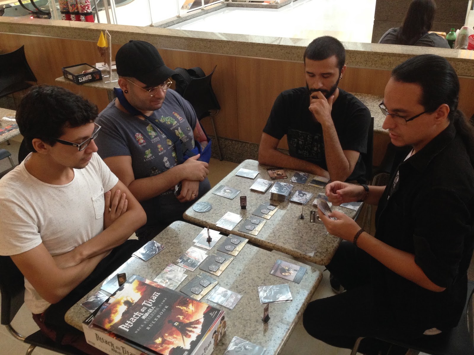 Mas essa ideia da versão reduzida foi bem legal, apesar de um problema ou outro na execução. Acho que é uma boa dica para a galera que está criando jogos de maior porte. Não dá para querer que o pessoal em um evento tenha disposição para jogar um protótipo que leva 2-3 horas de duração. Sei que isso não é o ideal, mas é melhor do que ficar com o jogo parado, servindo apenas de exposição.