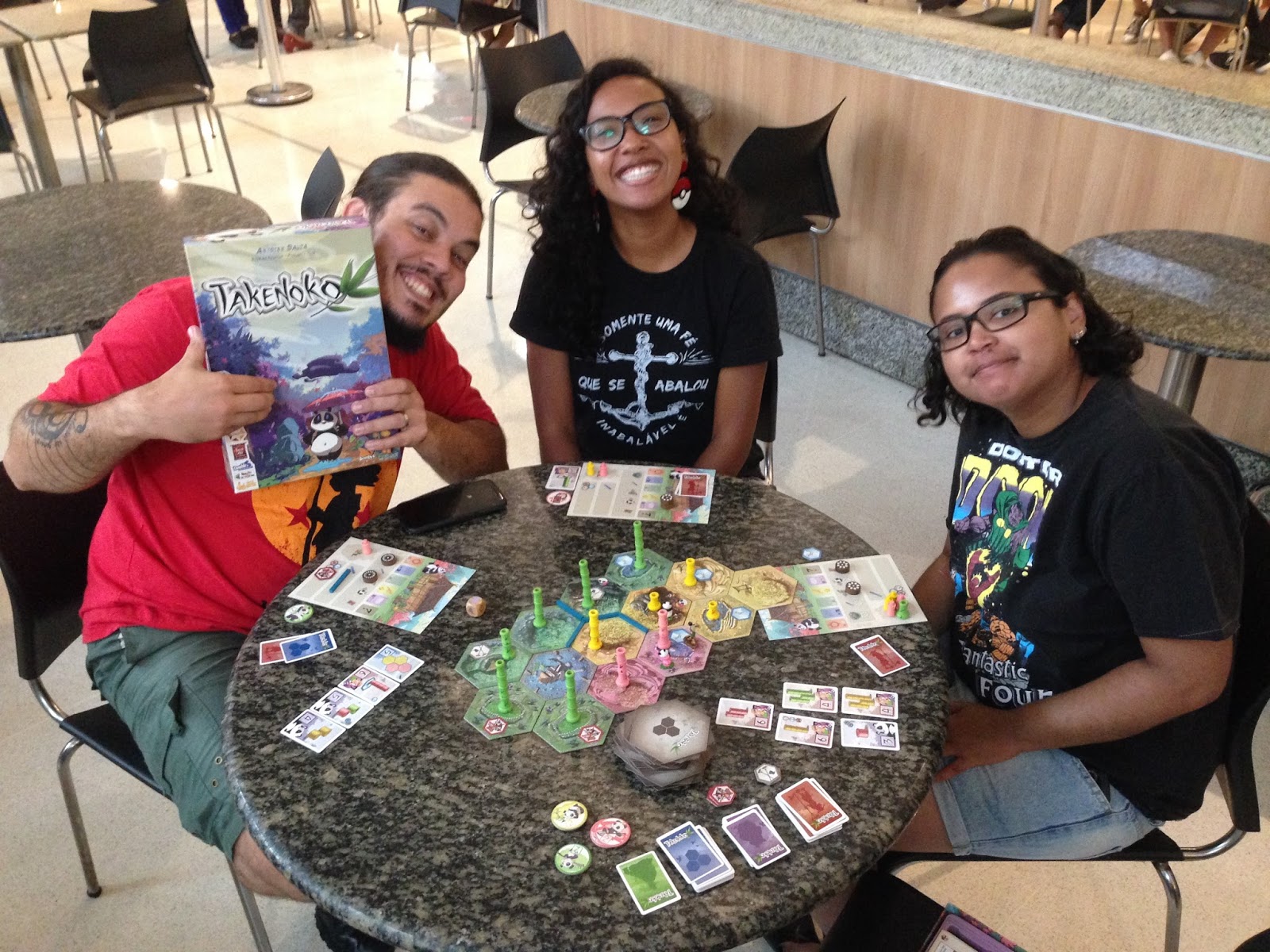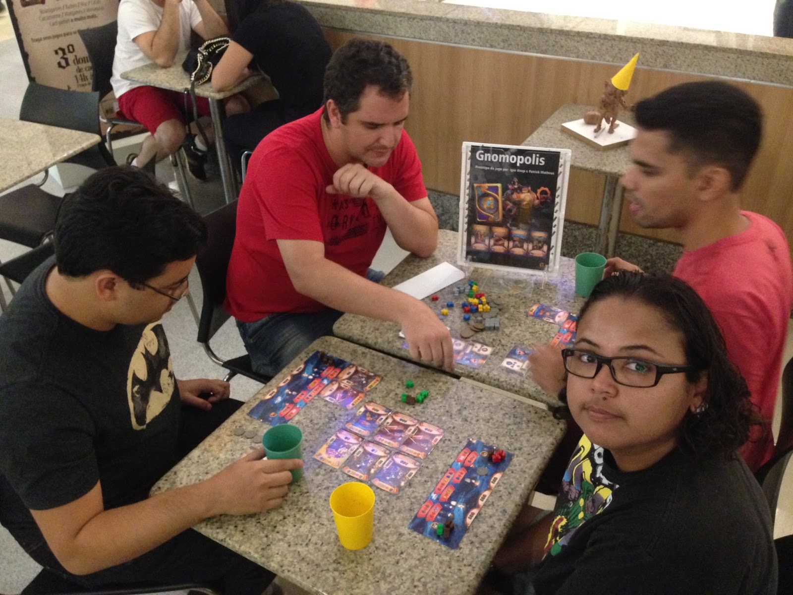Nós recebemos a visita do Igor Knop e do Patrick Matheus apresentando o Gnomopolis, um Pool Building "frita cérebro" muito bom para quem gosta de combos infinitos. Além disso, também tivemos a presença do Luiz Murilho que trouxe o Folia, um Worker Placement com temática de Carnaval que utiliza umas ideias bacanas para passar aquele "feeling" de administrar uma escola de samba e colocar um desfile na avenida.