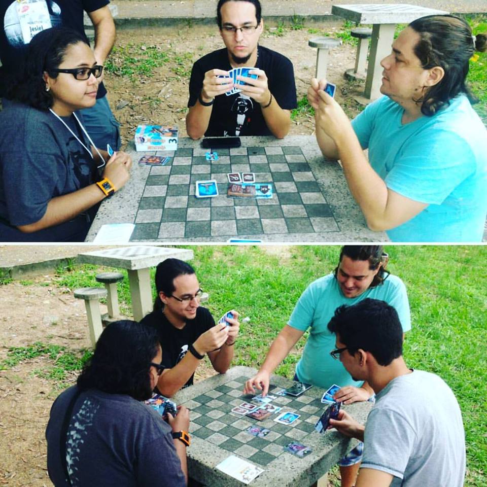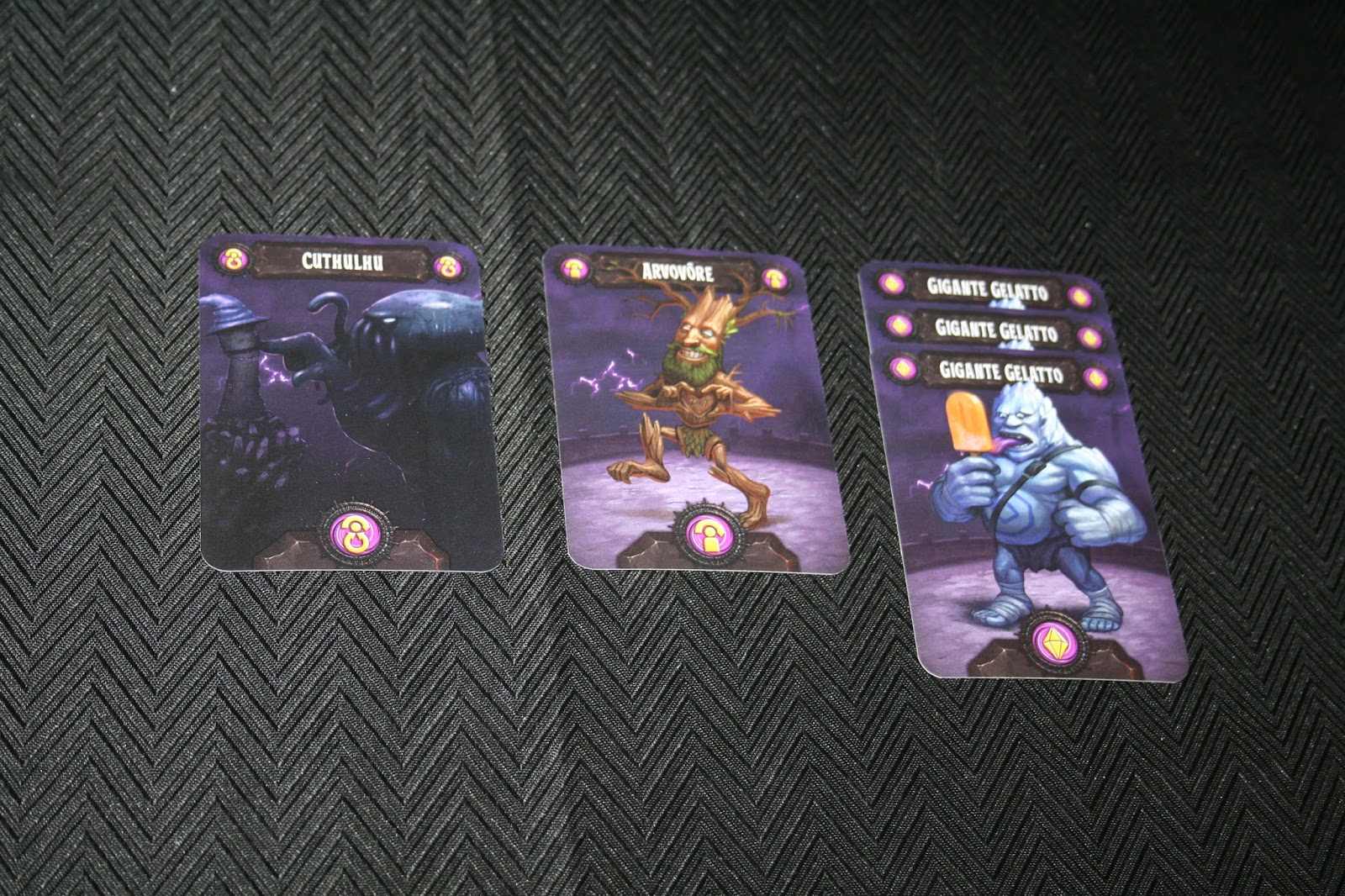 O material do jogo está bem caprichado, tanto em aparência quanto em qualidade. Apesar da versão jogada ser protótipo, ela é praticamente final, dando para ter uma boa noção do que esperar. A qualidade das cartas está bem boa e parece que cabe na caixa com sleeve de boas. Digo que parece porque não testei, minha observação é baseada no espaço sobrando na caixa. Eu gostei das cores e da arte também, além da diagramação bem limpa. Minha única crítica vai para carta Cuthulhu que ficou muito escura. O manual também é bem tranquilo de entender, pois além do jogo ser simples, ele está bem completo e organizado. Ele tem imagens, exemplos e clarificações sobre as chamadas cartas de torre, que são as mini cartas que trazem modificações diferentes a cada turno. Por último, mas não menos importante, revisão profissional de Bianca Melyna.