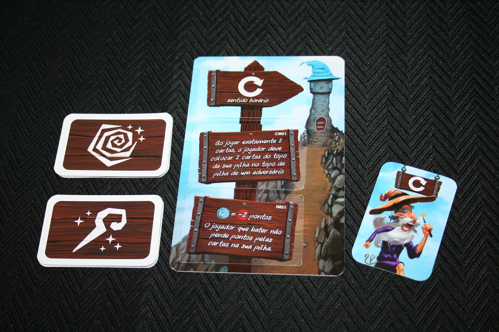 Além das cartas numeradas de 1 a 13, o jogo também conta com três cartas especiais. O curinga pode ser jogado possuindo um valor entre 1 e 13 à escolha do jogador, é uma boa forma de conseguir números mais altos. Não há limite para a quantidade de cartas desse tipo que podem ser jogadas. A carta de pular a vez funciona tipo aquela brincadeira da batata quente, é bom segurar para usar na hora em que a mesa está bem cheia e os números altos. A última carta é a que permite além de pular inverter o sentido da mesa. Também é uma carta para guarda para os números altos, mas com o adicional que é maravilhosa quando o jogador anterior sobe muito o valor para te derrubar.
