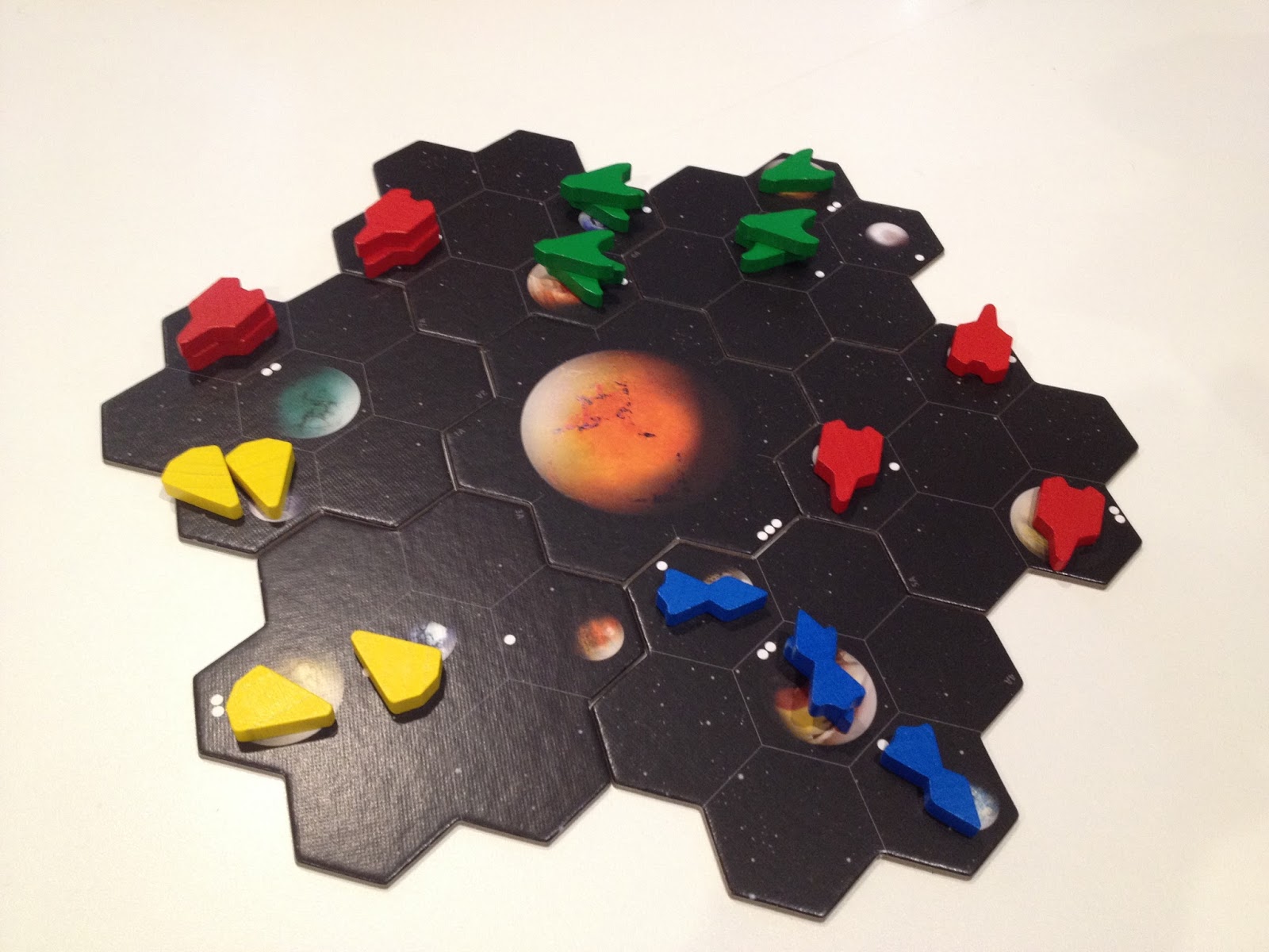 Ao final de revelarem as três cartas vem a fase de Extrair que é onde há uma manutenção de naves e cada jogador escolhe um setor para pontuar.