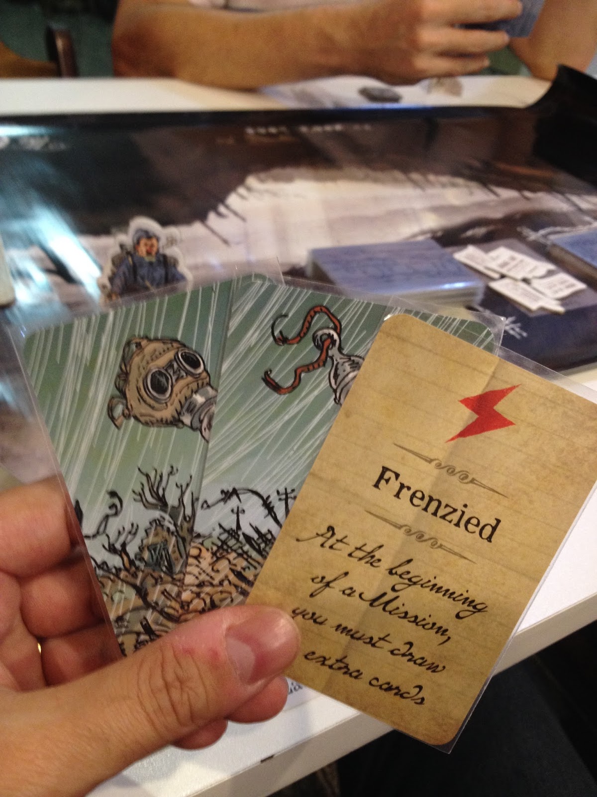 Recebemos cartas, que precisam ser baixadas a cada rodada ou então o jogador pode desistir da missão. Basicamente TODAS as cartas trazem coisas ruins para os jogadores, então a hora de baixá-las ou de desistir é importante.