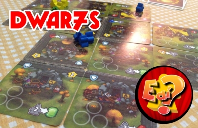 Em Dwar7s cada jogador está responsável por um reino formado por tiles, no início da partida recebemos 9 cartas que são iguais para todos e a cada rodada temos 3 ações para realizar entre colocar tiles, colocar anões e andar com os anões.
