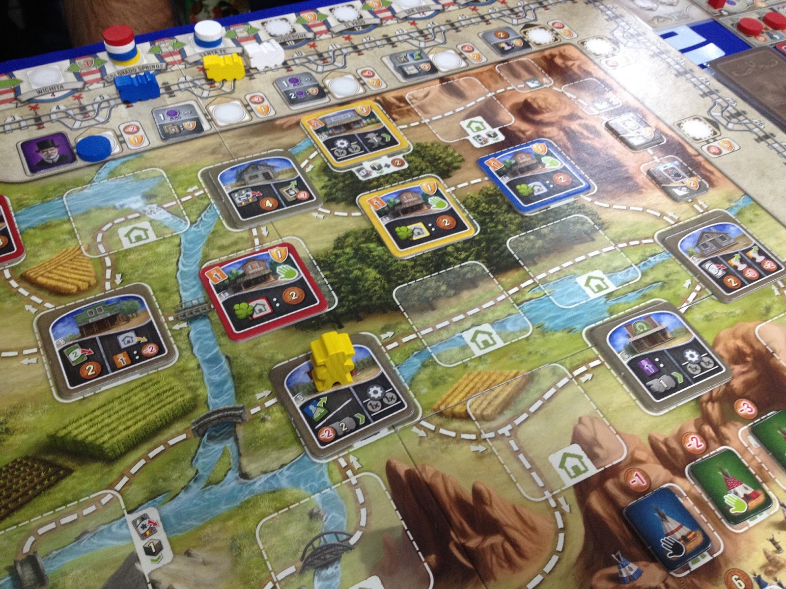 eu gosto bastante desse jogo, acho bem divertido, mas sinto nele que há um problema nas construções dedicadas a cada jogador. Elas são trabalhosas de se construir (fora as de nível 1, claro) e acabam que não dão muitos pontos. E os benefícios são muito pontuais, específicos. Concentrar-se no construtor como estratégia principal é uma baita furada. Avançar o trem e/ou investir em gado são estratégias muito mais fortes. Por que acho isso um problema? porque temos três tipos de funcionários, dois são equilibrados e um é muito inferior, se os três fossem parelhos, ah, aí o jogo ia ficar top.