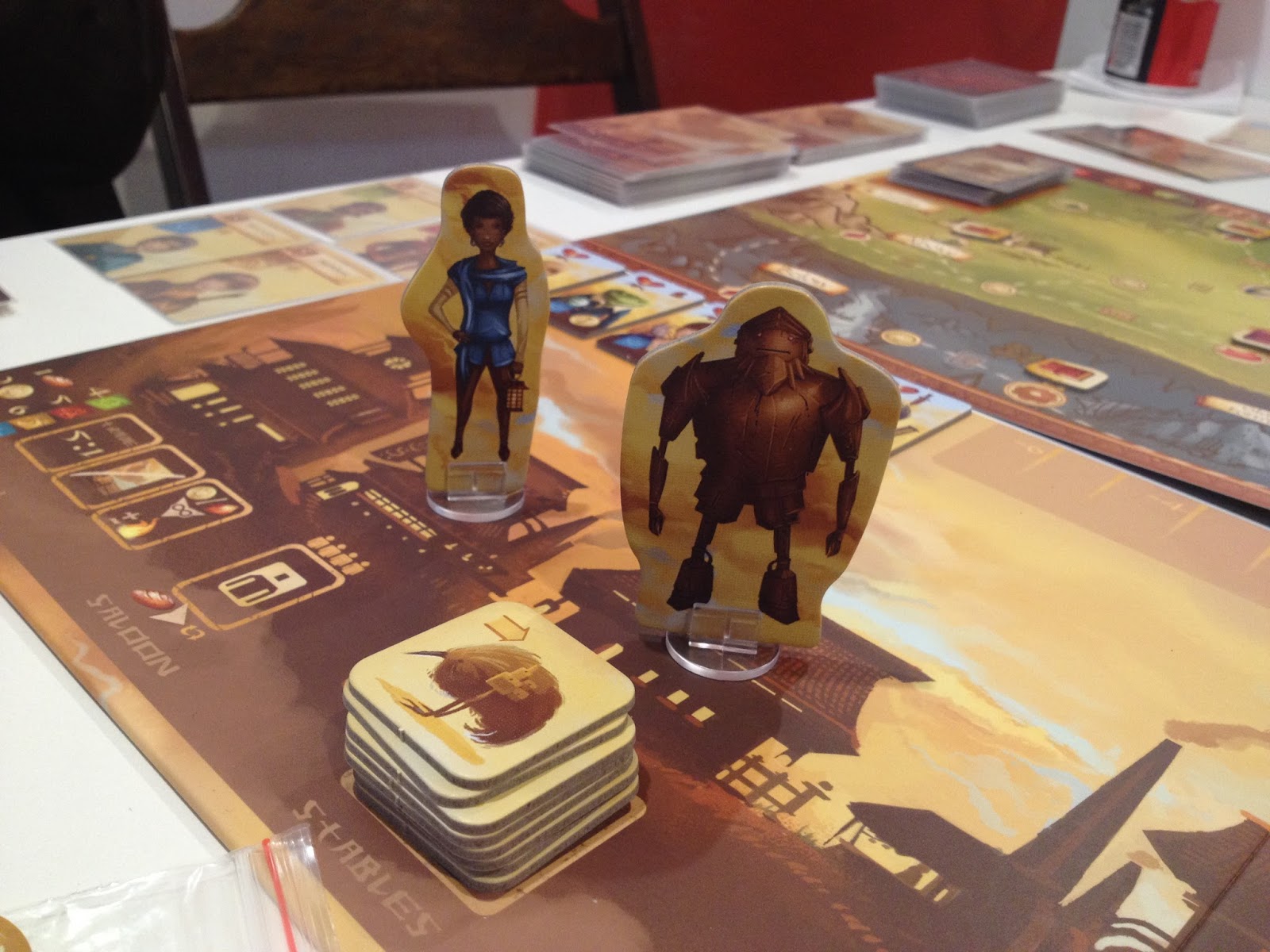 Ainda na cidade você pode comprar animais de carga (até 3) que te dão espaço para comprar cartinhas especiais, pode ainda ir nas minas para conseguir tesouros que te ajudam na compra das cartas maiores de pontos/efeitos (e que se acabarem na sua mão te reduzem pontos).