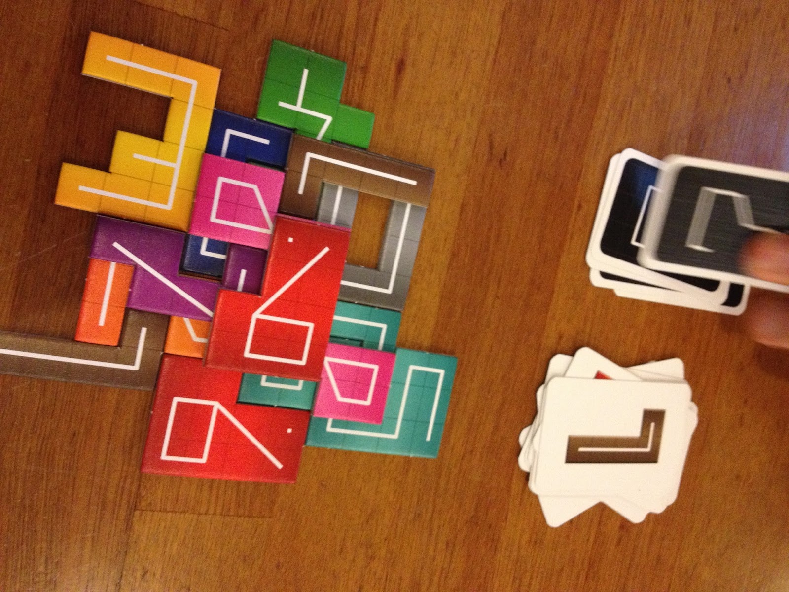 Existe um deck com 20 cartas, a cada turno uma carta é aberta com um dos números aparecendo, e todos os jogadores simultaneamente precisam colocar o tile daquele número na sua pilha.