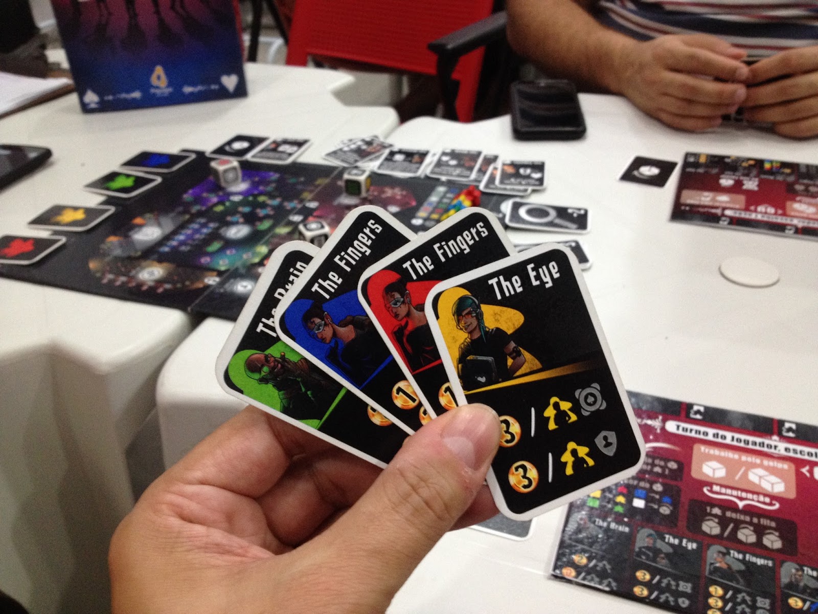 No início do jogo, cada jogador recebe quatro cartas de especialistas, com cada uma das quatro cores do jogo, o nosso objetivo é colocar os meeples que nos deem mais pontos, nas salas boas, e tentar "fugir" com eles.
