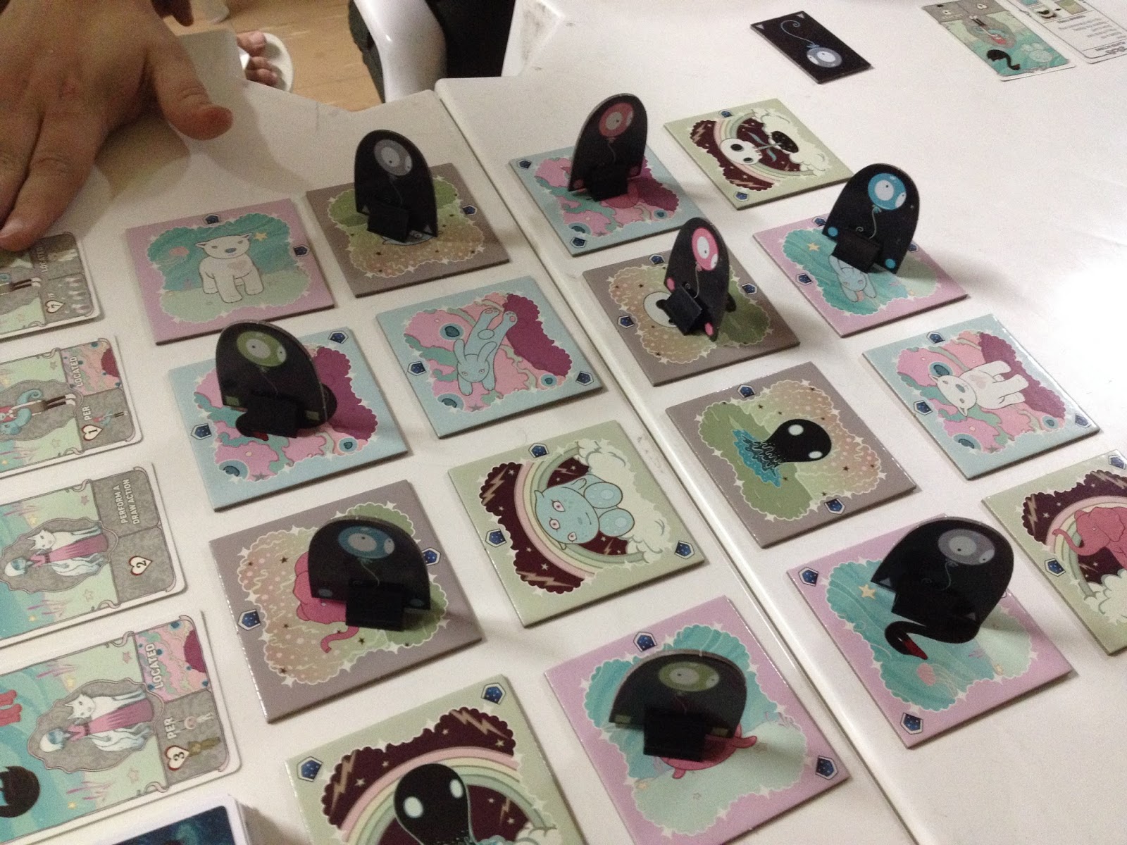 O lance do jogo é que você precisa baixar as cartas de amiguinho, e para conseguir isso, você precisa estar com seus dois balões (os peões do jogo) em determinados símbolos, e ao baixar essas cartinhas de amiguinhos você vai conseguindo corações que te darão pontos no final do jogo.