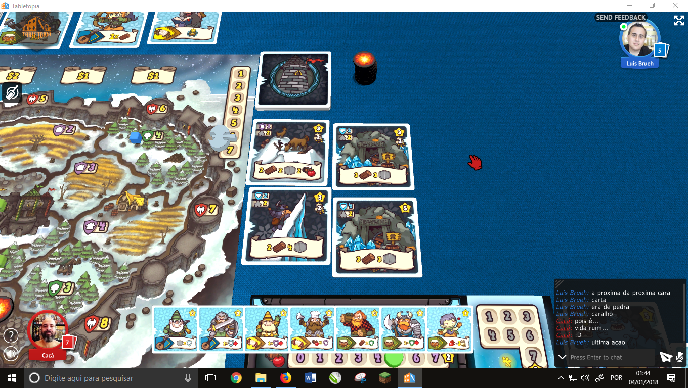 E fazer com que as cartas rodem é muito importante, pois é a forma que você tem para conseguir materiais e mover seus anões sem gastar pontos de ação, coisas que são extremamente importantes para conseguirmos vencer os desafios do tabuleiro.