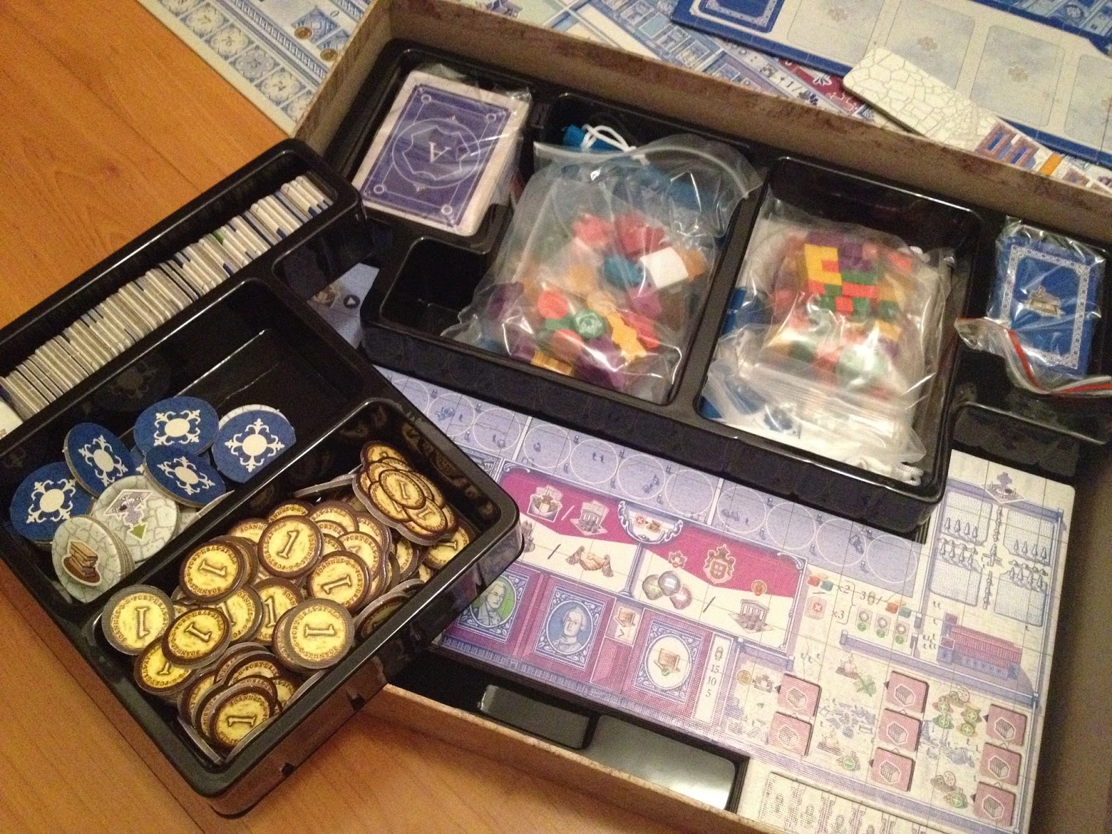 "Praticamente simultâneo" é sacanagem, Cacá! O jogo foi lançado nos Estados Unidos na Origins Game Fair, em junho de 2017. Foram 6 meses de diferença. Em Essen, em outubro, também já haviam diversas cópias no estande da editora disponíveis para os visitantes.