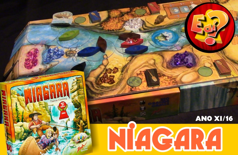 Lançado em 2004 e detentor do Spiel das Jahres do ano seguinte, em Niagara somos aventureiros que desafiam os perigos das cachoeiras atrás de pedras preciosas.