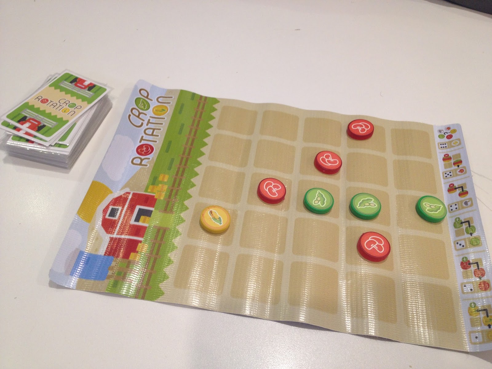Lançado inicialmente como print-and-play pelo Eduardo Guerra, Crop Rotation é um jogo de reconhecimento de padrões onde precisamos "plantar" milho, feijão e soja de forma a cumprir objetivos e ganhar o jogo.